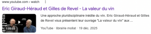 Eric Giraud-Héraud et Gilles de Revel vous présentent leur ouvrage « La valeur du vin » aux éditions Dunod. Entretien avec Henry Clemens (Mollat)